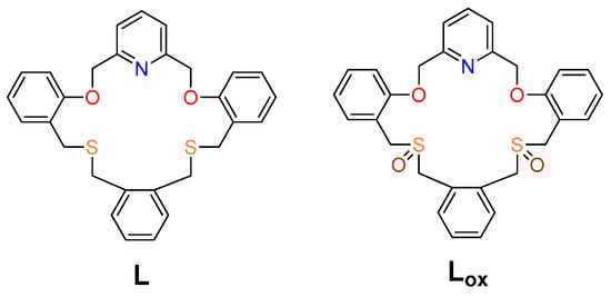 - Lee, E.; Lee, S.G.; Park, I.-H.; Kim, S.; Ju, H.; Jung, J.H.; Ikeda, M.; Habata, Y.; Lee, S.S. Endo- and Exocyclic Coordination of a 20-Membered N2O2S2-Macrocycle and Cascade Complexation of a 40-Membered N4O4S4-Macrocycle. Inorg. Chem. 2018, 57, 6289–6299. [Google Scholar] [CrossRef] [PubMed]