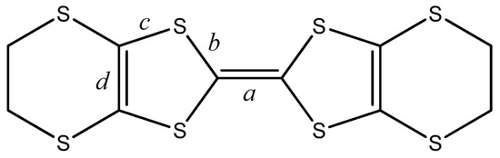 - Yamada, J.-i.; Watanabe, M.; Anzai, H.; Nishikawa, H.; Ikemoto, I.; Kikuchi, K. BDH-TTP as a Structural Isomer of BEDT-TTF, and Its Two-Dimensional Hexafluorophosphate Salt. Angew. Chem. Int. Ed. 1999, 38, 810–813. [Google Scholar] [CrossRef]