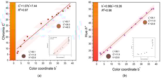 According to Pearson’s correlation analysis, color coordinates a* and b* fit to the chroma C*. The relationship between C*, a* and b* is: