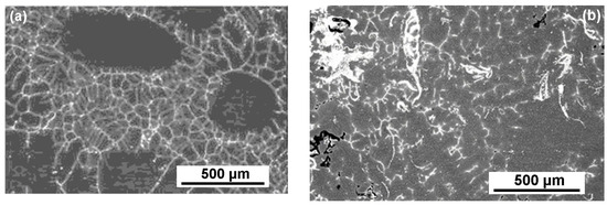 SEM micrographs of ZEK100 samples after annealing at 640 °C (a) and 650 °C (b) for 2 h.