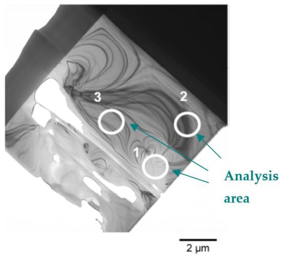 Transmission electron microscopy (TEM)-based techniques enable the investigation of both the crystallographic structure and chemical composition of samples at the micro- to nanoscale range These microscopic studies were obtained on a thin lamella produced from the La-doped STO crystal by the Focus ion beam (FIB) process. In contrast to EDX measurements on bulk materials, the lateral resolution of the elements for thin foils is much better, so it was possible to check the exact concentration of Sr, Ti, and La doping cations on a small area of the lamella. EDX measurements on STO with a nominal 5% La doping, performed in three different areas on the lamella (Figure 4), showed significant variations in chemical composition (see Table 2).