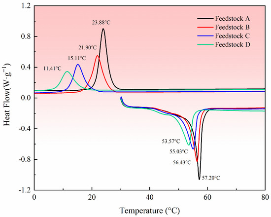The heat absorption and enthalpy of crystallization of four feedstocks.