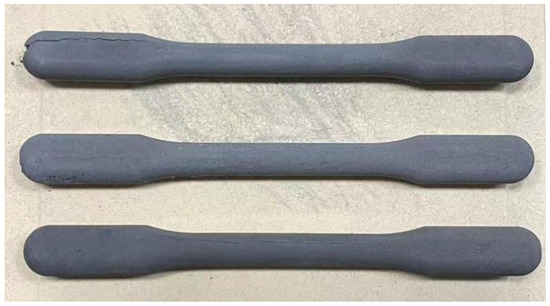 By comparing Figure 6 and Figure 11, it can be concluded that most PEG and PVP molecules had been removed during the water debinding, forming open channels. Residual PEG and PVP molecules were removed along with PMMA in the subsequent thermal debinding. As can be seen from Figure 10, sample D has distinct cracks on its surface. This was further verified by separately carrying out water debinding of sample D (Figure 12). As can be seen from Figure 12, there were cracks in samples of group D. The molecular weight of PVP is relatively high. When the added amount of PVP is large enough, it can result in stresses within the sample during the leaching process. When these stresses are greater than the strength provided by the backbone polymer, swelling, cracks and other defects appear on the surface of the sample. Hence, the PVP content of 30 wt.% was not suitable, as it caused samples to be destroyed.