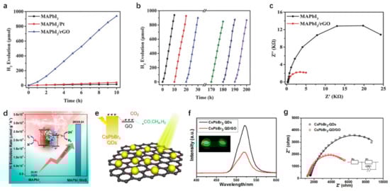 - Xu, Y.F.; Yang, M.Z.; Chen, B.X.; Wang, X.D.; Chen, H.Y.; Kuang, D.B.; Su, C.Y. A CsPbBr3 Perovskite Quantum Dot/Graphene Oxide Composite for Photocatalytic CO2 Reduction. J. Am. Chem. Soc. 2017, 139, 5660–5663. [Google Scholar] [CrossRef]