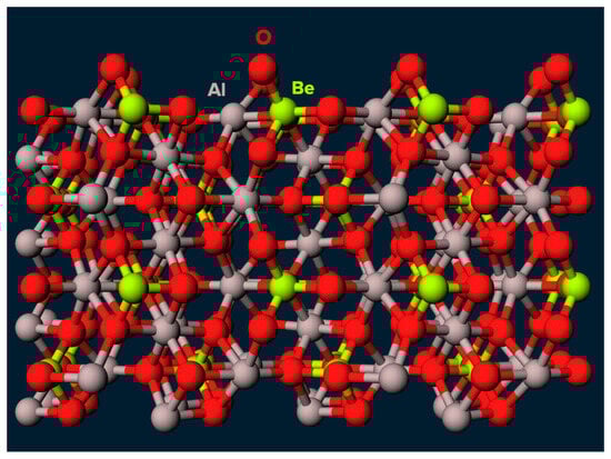 Figure 1. The crystalline structure of chrysoberyl includes beryllium, aluminum, and oxygen atoms [].