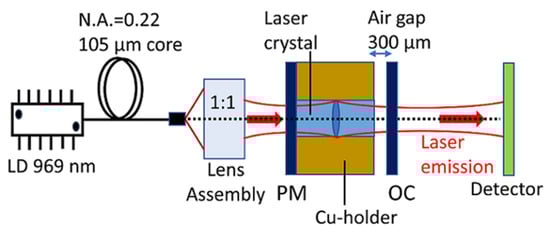 Scheme of the Yb:(Y,Lu)AG microchip laser: LD—laser diode, PM—pump mirror, OC—output coupler.