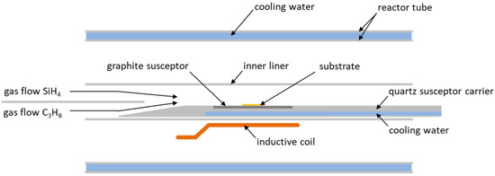 - Chassagne, T.; Ferro, G.; Chaussende, D.; Cauwet, F.; Monteil, Y.; Bouix, J. A comprehensive study of SiC growth processes in a VPE reactor. Thin Solid Film. 2002, 402, 83–89. [Google Scholar] [CrossRef]