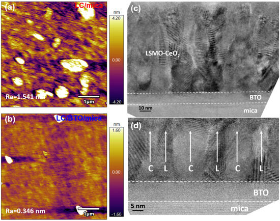 - MacManus-Driscoll, J.L.; Zerrer, P.; Wang, H.; Yang, H.; Yoon, J.; Fouchet, A.; Yu, R.; Blamire, M.G.; Jia, Q. Strain control and spontaneous phase ordering in vertical nanocomposite heteroepitaxial thin films. Nat. Mater. 2008, 7, 314–320. [Google Scholar] [CrossRef] [PubMed]