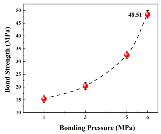 The bond strength at different bonding pressures.