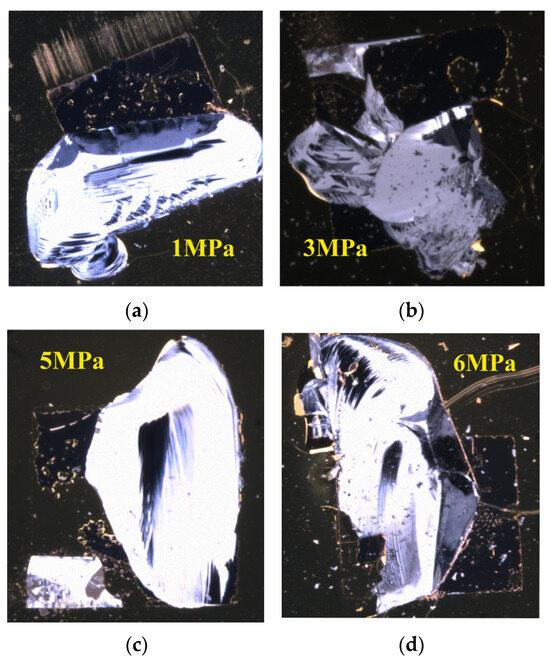 The ultra-depth of field stereo microscope images of the fracture surface at the bonding pressure of 1 (a), 3 (b), 5 (c), and 6 (d) MPa.
