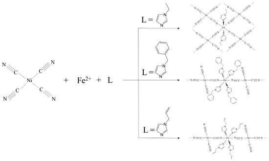 In our previous study, we focused on five-membered, imidazole (Im) derivatives, imidazole (HIm), and 1-methylimidazole (1-MeIm) [24], which show 2D Hofmann-like layer structures.