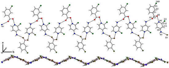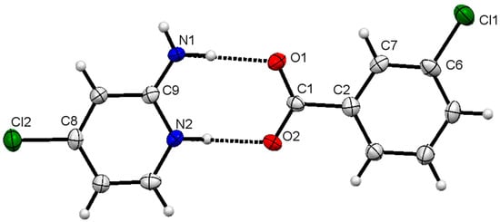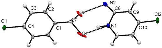 2.4. Single X-Ray Structural Description of Cocrystal of 3-Chlorobenzoic Acid:4-Amino-2-Chloropyridine, Compound 1