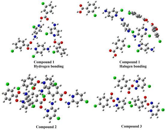 3.4. DFT Studies for Clusters of Compounds 1–3