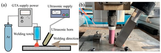- Tian, Y.; Shen, J.; Hu, S.; Wang, Z.; Gou, J. Effects of Ultrasonic Vibration in the CMT Process on Welded Joints of Al Alloy. J. Mater. Process. Technol. 2018, 259, 282–291. [Google Scholar] [CrossRef]
