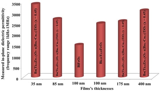 Measured in-plane dielectric permittivity of BCTZ 45, BFO and Y-doped BFO comparison. The data have been adopted from ref. [9,31] for comparison purposes under a Creative Commons Attribution 4.0 International License.