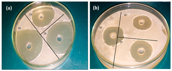 (a) Antibacterial activity of eggshell-mediated hematite NPs against (a) S. aureus and (b) E. Coli.