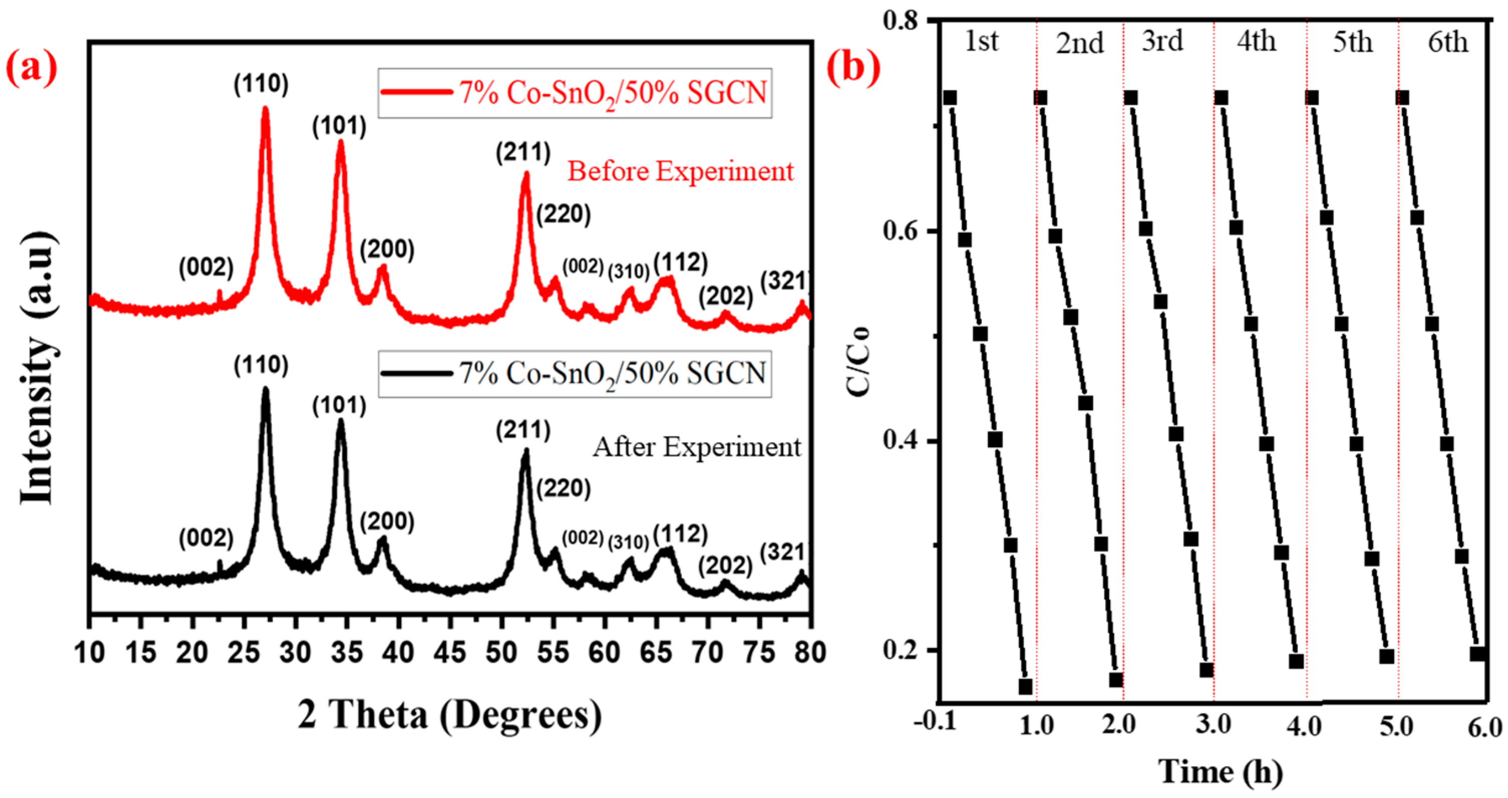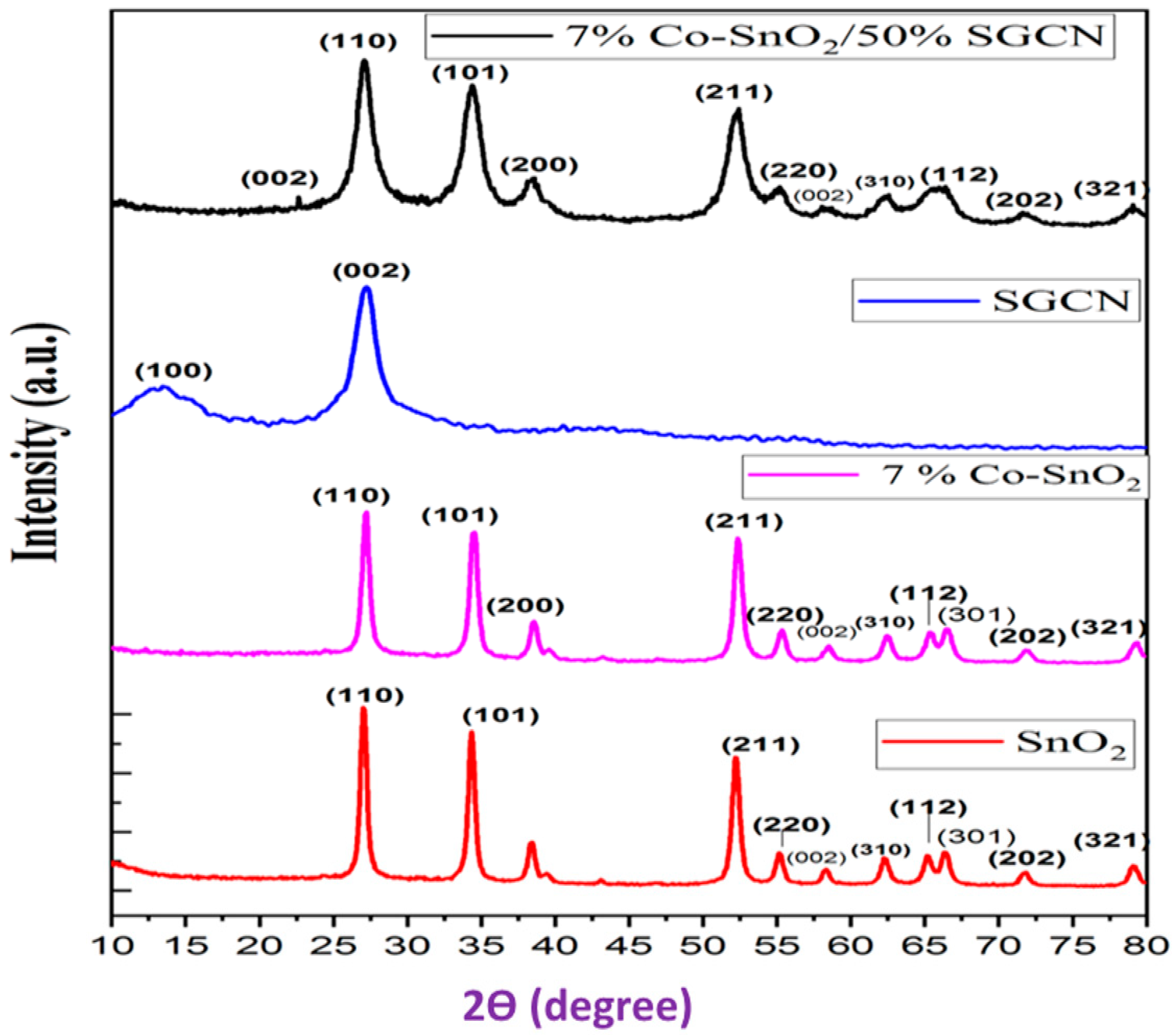 2.5. Synthesis of Co-SnO2/SGCN Nanocomposites