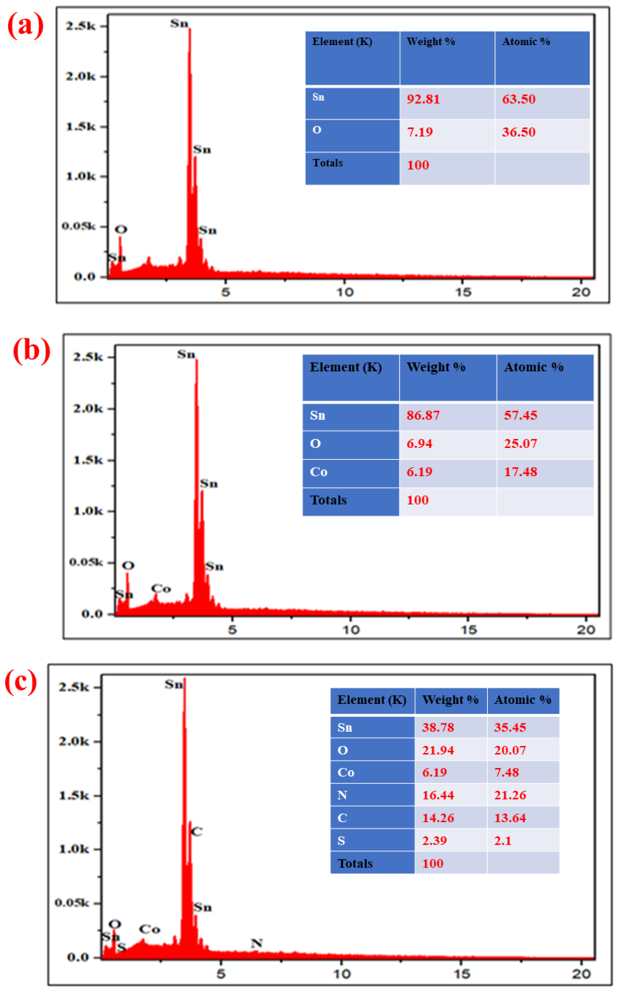 | Percentage | SnCl2.2H2O (g) | Co(NO3)2.6H2O (g) |