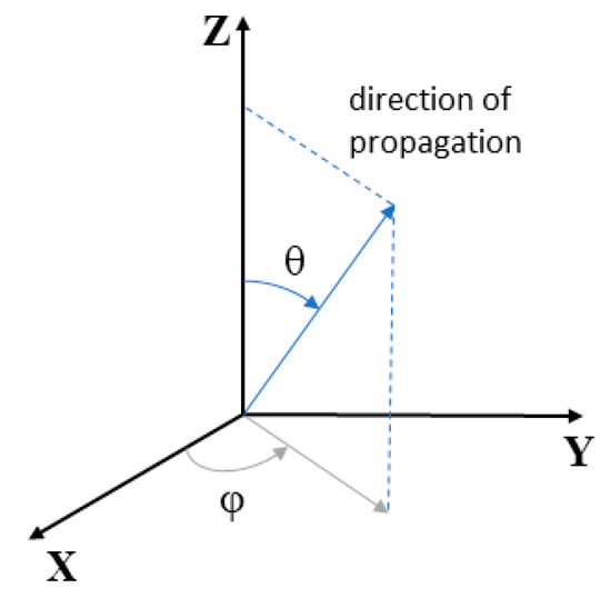 where θ and φ are phase-matching angles for type-I SHG. More exactly, θ is defined as the angle between the crystallophysic Z axis and the direction of propagation through the crystal, and φ is the angle between the crystallophysic X axis and the projection of the direction of propagation in the XY plane of the crystal (Figure 16).