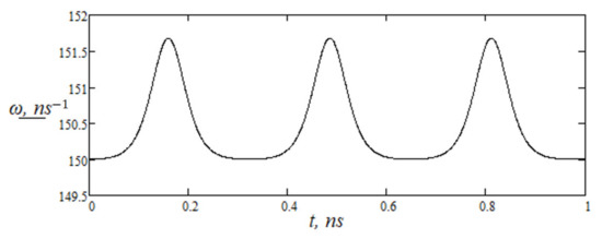 Figure 7 shows the total angular frequency modulus of the nanotorus with “frozen” fullerene. The highest peaks on this graph show “Dzhanibekov flips”, and the time between peaks is the period with which these somersaults are made.