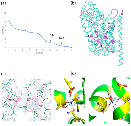 Na+ is the most abundant ion in living organisms and plays essential roles in central physiological processes [1]. For example, Na+ pumps create and maintain an electrochemical gradient of Na+ across the plasma membrane, and this energy is used for nutrient uptake into cells or neuronal signaling and cardiac muscle contraction [2]. A high concentration of intracellular Na+ is toxic, and Na+ is continuously extruded by Na+ transporters and pumps [3]. Na+ is also essential for some enzyme activity as a co-factor, for example, β-galactosidase, factor Xa, and thrombin [4]. Therefore, the identification of Na+ and the determination of its precise location in protein structures can provide important clues for understanding the mechanisms of Na+ transporters, channels, pumps, and Na+-dependent enzymes.