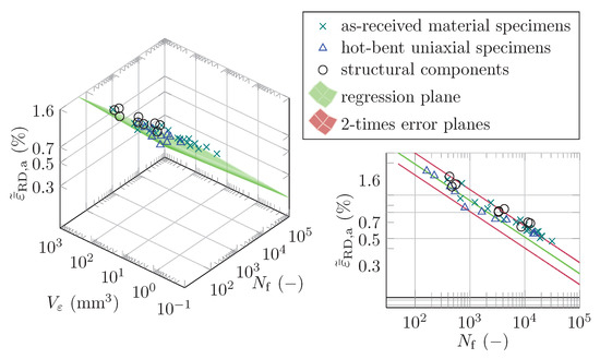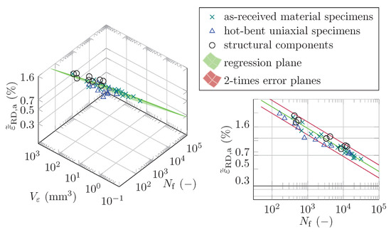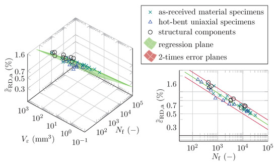 - Denk, J.; Whitmore, L.; Huber, O.; Diwald, O.; Saage, H. Concept of the highly strained volume for fatigue modeling of wrought magnesium alloys. Int. J. Fatigue 2018, 117, 283–291. [Google Scholar] [CrossRef]
