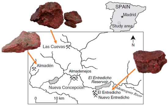 Map of the Almadén mining district and the location of the ore fragments. Adapted with permission fromGray et al. []. 2013. Elsevier.