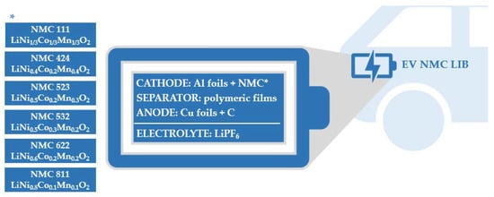 Composition of a general NMC LIB cell (* it complements individual NMC cell chemistries).