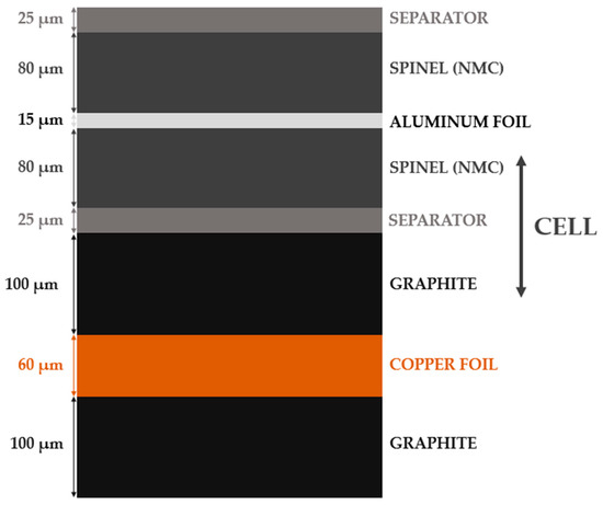 Scheme of the analyzed NMC battery cell structure.