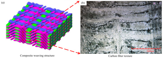 Structure of the 2.5-dimensional Cf/SiC composite material ((a). 2.5D structure diagram; (b). microscope figure).