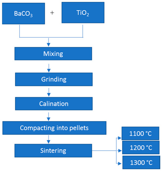 - Ying, K.-L.; Hsieh, T.-E. Sintering behaviors and dielectric properties of nanocrystalline barium titanate. Mater. Sci. Eng. B 2007, 138, 241–245. [Google Scholar] [CrossRef]