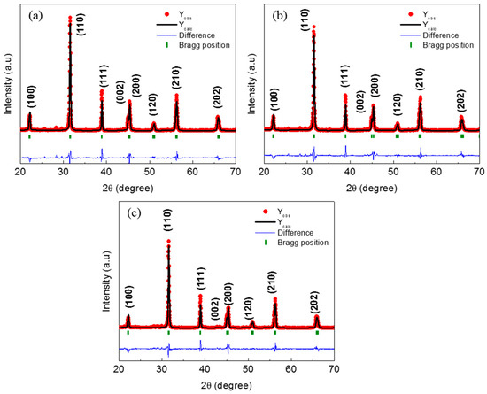 - Liu, R.; Chen, Z.; Lu, Z.; Wang, X. Effects of sintering temperature and Bi2O3, Y2O3 and MgO co-doping on the dielectric properties of X8R BaTiO3-based ceramics. Ceram. Int. 2022, 48, 2377–2384. [Google Scholar] [CrossRef]