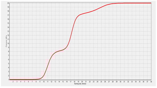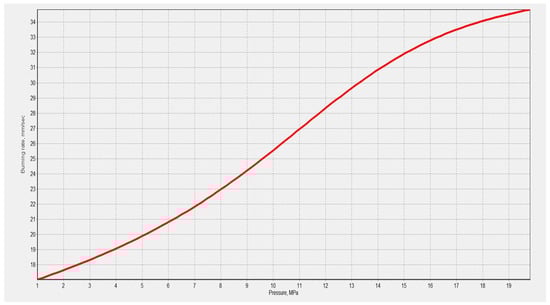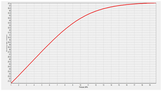 An example of a graph of connection of burning rate and pressure. The graph is valid only for the set of input factors values indicated in Table 2. For other sets of values, the graphs will be different.