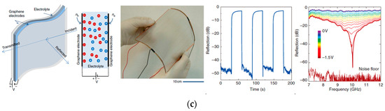 - Balci1, O.; Polat, E.O.; Kakenov, N.; Kocabas, C. Graphene−enabled electrically switchable radar−absorbing surfaces. Nat. Commun. 2015, 6, 6628. [Google Scholar] [CrossRef]