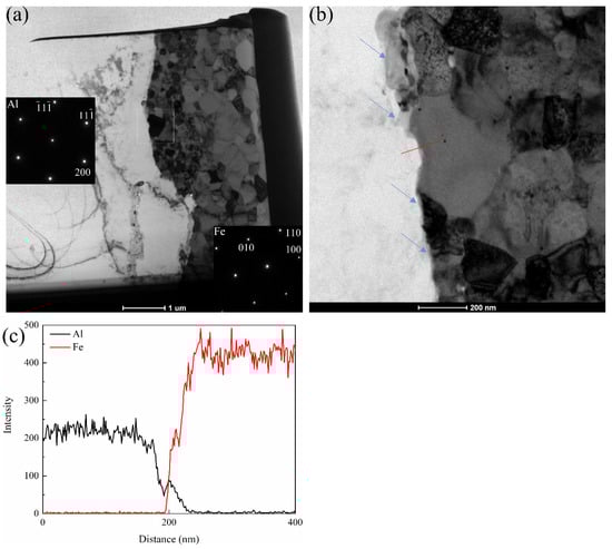 - Yang, Y.; Zhang, F.; He, J.; Qin, Y.; Liu, B.; Yang, M.; Yin, F. Microstructure, growth kinetics and mechanical properties of interface layer for roll bonded aluminum-steel clad sheet annealed under argon gas protection. Vacuum 2018, 151, 189–196. [Google Scholar] [CrossRef]