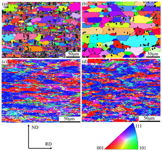 - Yan, H.; Bi, H.; Li, X.; Xu, Z. Microstructure, texture and grain boundaries character distribution evolution of ferritic stainless steel during rolling process. J. Mater. Process. Technol. 2009, 209, 2627–2631. [Google Scholar] [CrossRef]