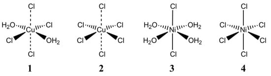 - Harker, D. The Crystal Structure of Cupric Chloride Dihydrate CuCl2·2H2O. Z. Kristallogr. 1936, 93, 136–145. [Google Scholar] [CrossRef]