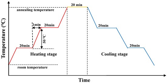 Schematic diagram of the annealing process. (Red curve represents heating stage; blue curve represents cooling stage).
