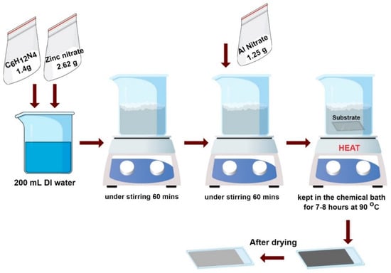 2.1. CBD-Based Fabrication of Al-Doped ZnO