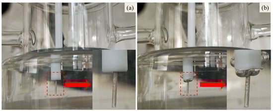 Figure 2 illustrates a schematic of how the vacuum environment affects the electrochemical behavior of Ga3+. In the cathode region, the vacuum environment inhibited the Volmer reaction of H+ to a hydrogen atom (Hads), leading to lower H+ consumption on the cathode surface. In the anode region, the oxygen evolution reaction (OER) of H2O to O2 was promoted, which produced additional O2. At the same time, the rapid release of O2 bubbles agitated the electrolyte solution, which led to a uniform H+ distribution in the electrolyte solution. Thus, the inhibition of the Volmer reaction and the promotion of the OER together stabilized the pH of the cathode region. This finally interrupted the route of Ga3+ entering the films in the form of Ga2O3 by the hydrolytic reaction of Ga3+.