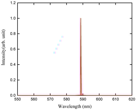 High-peak-power pulsed lasers at 550–600 nm are very useful in applications such as medical skin treatments [], biological detection [], optical-resolution photoacoustic microscopy [], and stimulated emission depletion microscopy []. Light sources at 589 nm are particularly important for applications such as atmospheric lidar measurement [,], adaptive optics [], and sodium guide stars [,]. The technologies for developing orange light sources at 589 nm involve dye lasers, diode-pumped solid-state lasers, optically pumped semiconductor lasers, and fiber lasers []. The combination of intracavity stimulated Raman scattering (SRS) and second harmonic generation (SHG) in a diode-pumped solid-state Q-switched laser is nowadays the most efficient method for achieving a high-peak-power output [,,,,,,,]. In addition to Q-switched operation, the concept of using the intracavity Raman and SHG conversion in a diode-pumped neodymium laser to obtain yellow-orange radiation has been efficiently realized in continuous-wave and quasi-continuous-wave regimes [,,,,,,,,].