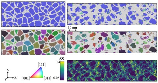 - Stukowski, A. Computational Analysis Methods in Atomistic Modeling of Crystals. JOM 2014, 66, 399–407. [Google Scholar] [CrossRef]