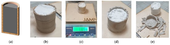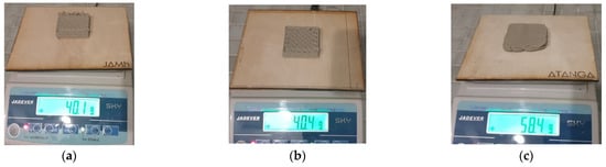 After the 3D printing, measurement and control tests were carried out for 5 days in exact 24 h periods to analyse the loss of moisture by evaporation, Scheme 1.