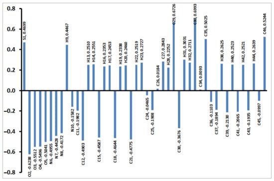 Additionally, the HOMO (−5.6777 eV) and LUMO (−3.1147 eV) energies were used to calculate the ionization potential (I = −EHOMO), electron affinity (A = −ELUMO), chemical potential (μ = − (I + A)/2), hardness (η = (I−A)/2) as well as electrophilicity index (ω = μ2/2η) [,,,,,,]. Their values were calculated to be 5.6777, 3.1147, −4.3795, 2.5603 and 3.7765 eV, respectively. The calculated parameters have important rule in the biomolecular reactivity.