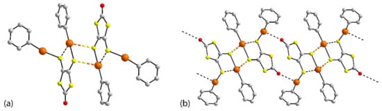 - Tiekink, E.R.T. Aggregation patterns in the crystal structures of organometallic Group XV 1,1-dithiolates: The influence of the Lewis acidity of the central atom, metal- and ligand- bound steric bulk, and coordination potential of the 1,1-dithiolate ligands upon supramolecular architecture. CrystEngComm 2006, 8, 104–118. [Google Scholar] [CrossRef]