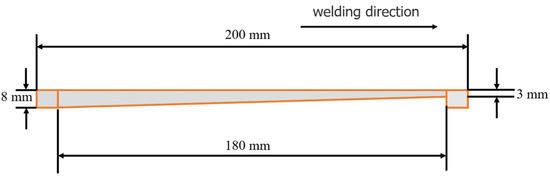 The test plate is designed as an inclined plate, and the size of the inclined plate is shown in Figure 3. After the test, it is found that within the test parameters, the 8 mm steel plate will not be penetrated. During the welding process, when the penetration feature begins to appear on the back of the steel plate, the thickness where the penetration feature is located can be considered as the depth of the keyhole under this parameter.