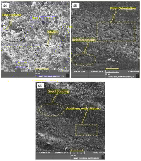 SEM image of the S4, S5, and S6 hybrid composites before testing.