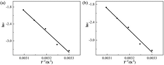 where ν is the corrosion rate, R is the standard thermodynamic constant, T is the thermodynamic temperature, Ea is the activation energy, and A is the pre-exponential factor.