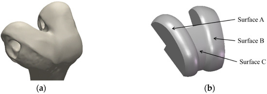 Knee joint model: (a) scanned knee joint model; (b) artificial knee joint model.