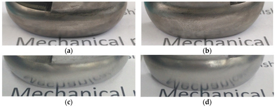 After 16 h of cumulative abrasive flow machining, the experimental observations were qualitatively analyzed, and the results are shown in Figure 10. It can be seen from this figure that the changes in surface quality before and after the machining process were obvious, where surface A and surface B (see Figure 1b) of the titanium alloy artificial knee joint before the machining process essentially could not reflect the word “Mechanical” written on paper, whereas after the abrasive machining process, these two surfaces could reflect each letter more clearly. However, due to the shape of the workpiece, only the lower part of the surface shown in the figure could reflect these letters, and the upper part was blurred because it could not receive the light reflected from the paper. Thus, we demonstrated that abrasive flow machining with a constrained flow channel could significantly improve the surface quality of the titanium alloy artificial knee joint; a further quantitative analysis was conducted as follows in detail.